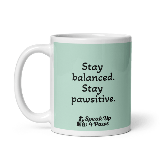 "Stay balanced. Stay pawsitive." - Mug